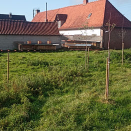 Une fois scié, les grumes arrivent à notre atelier où nous le stockons au bord de notre verger pour un séchage naturel d'une à plusieurs années.